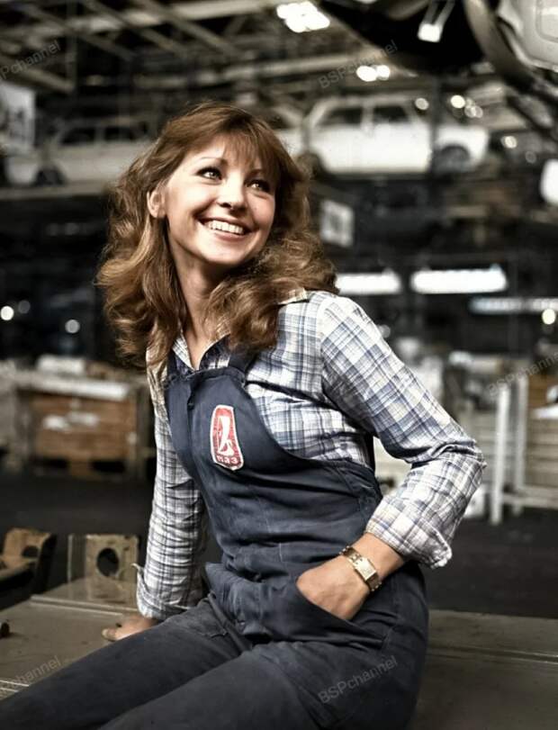 Сотрудница Волжского автомобильного завода в фирменной спецовке, 1981 год.